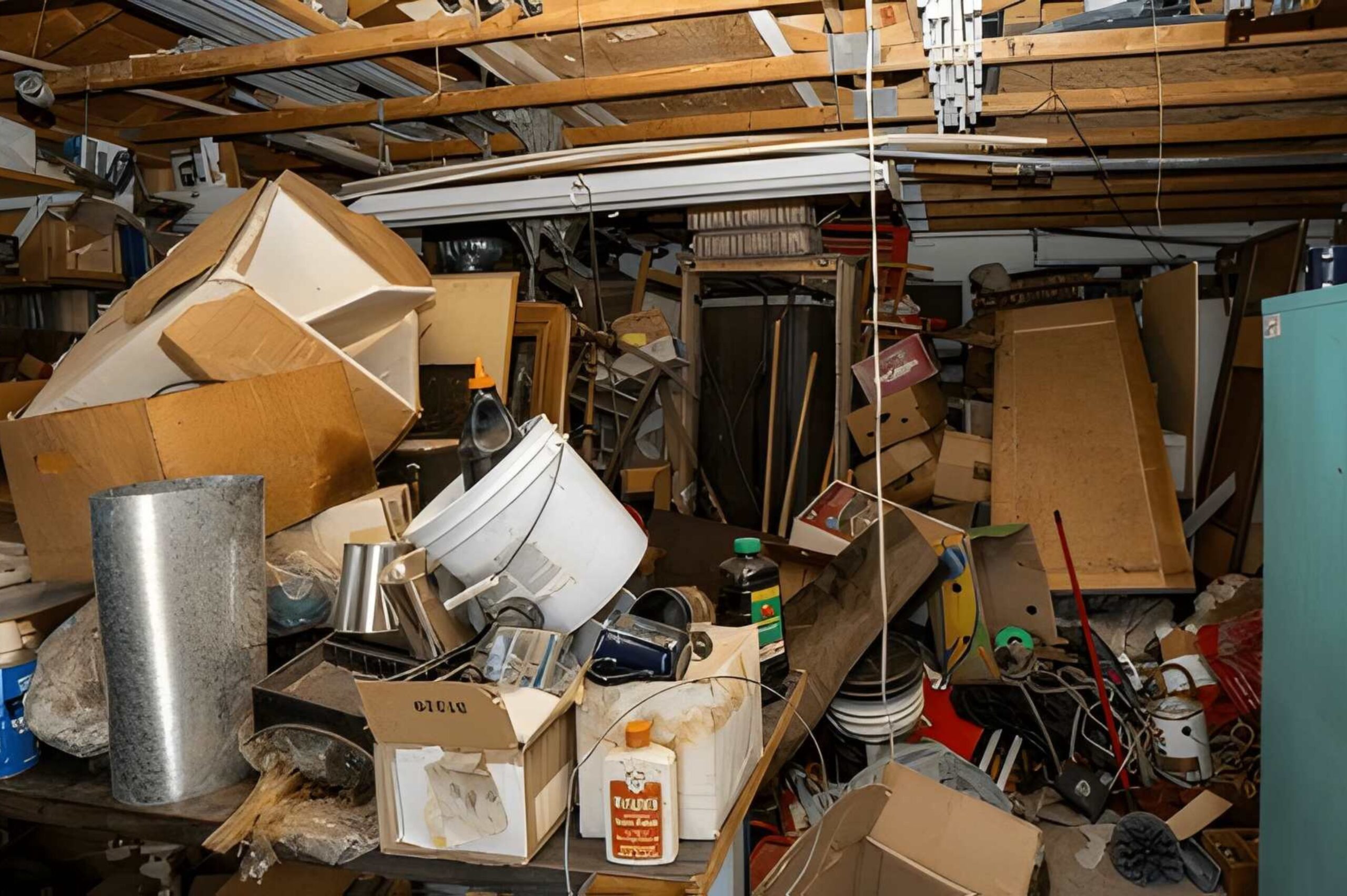 - Piles of cardboard boxes and all kinds of junk