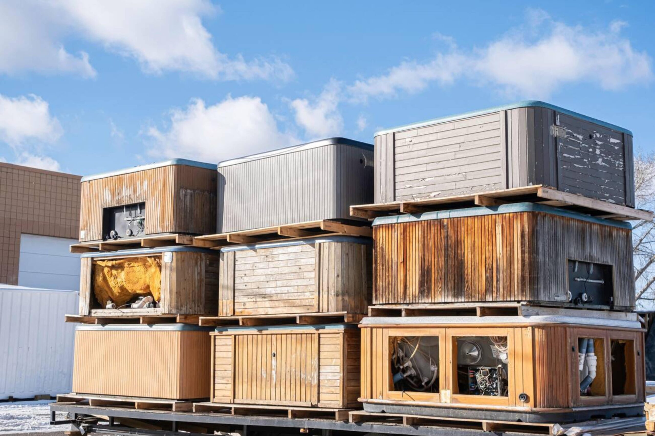If the hot tub is too big to transport intact, we chop it into tiny pieces. We will also take out the facing, pumps, jets, and insulation.
